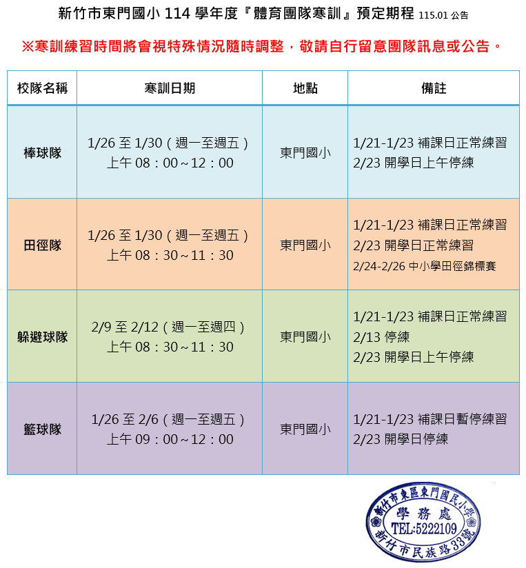 ★詳細內容請參閱各團隊寒訓通知單★