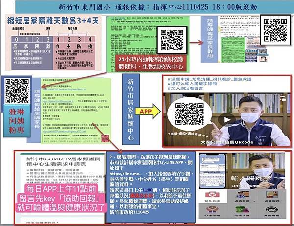 1110425 符合上網通報東門表單師生、也要加入新竹市居家關懷APP:雅琳阿姨4/26粉專公告 請點我 、 示範影片請點我