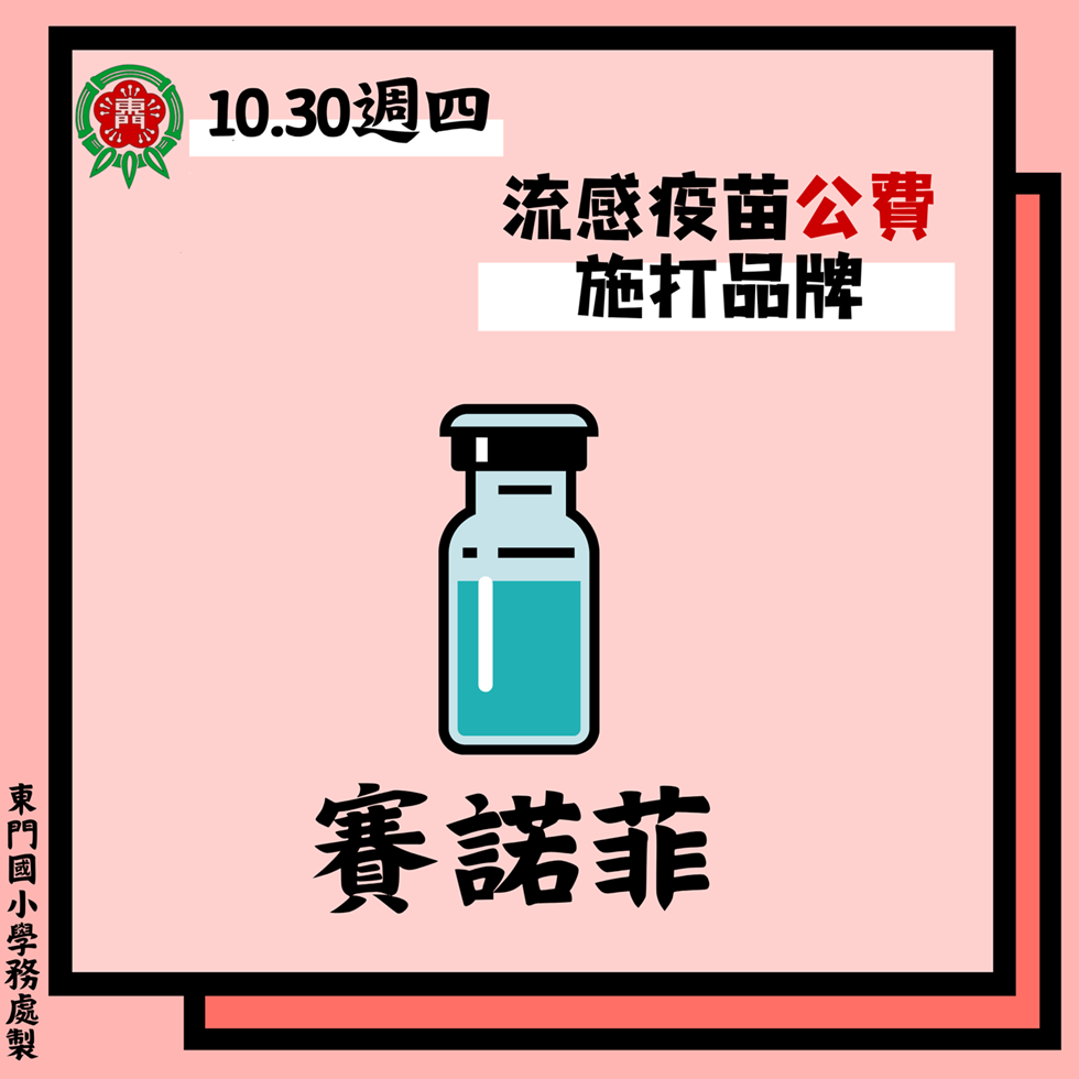 四、10/30東門公費流感疫苗施打廠牌:賽諾菲。