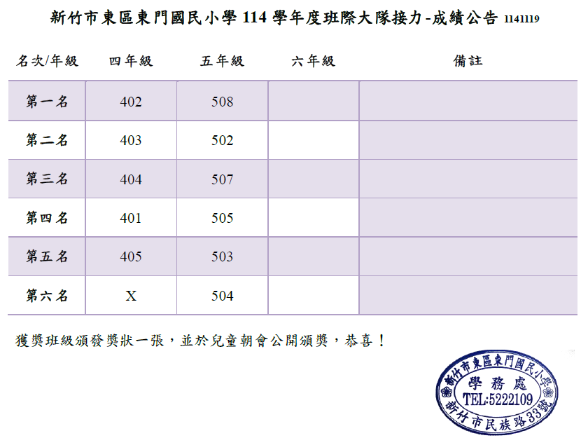 恭喜以上獲獎班級,另擇日於兒童朝會公開頒獎!