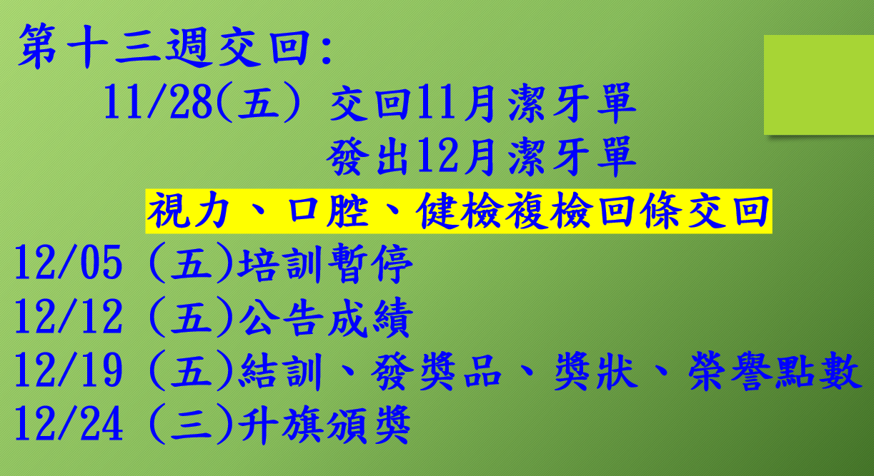 1141128第十三週健康小天使培訓,請參閱附件。