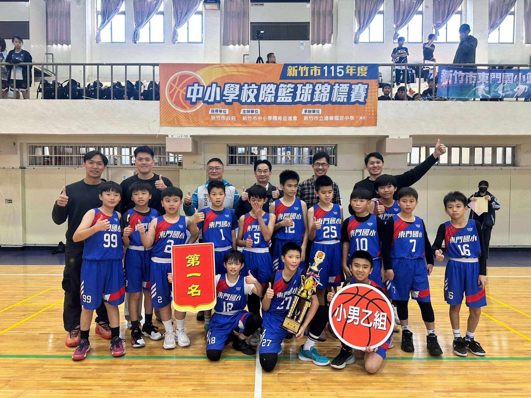 本次賽事競爭激烈,東門小將們展現出優異的球技、穩定的攻防節奏與團隊合作精神。每一場比賽都全力拚戰、毫不鬆懈,最終在眾多強隊中脫穎而出。特別令人振奮的是,甲組隊伍同時取得教育部全國籃球賽新竹市代表權,將代表新竹市前往臺北參加全國賽,為本市與學校爭取更高榮耀。
